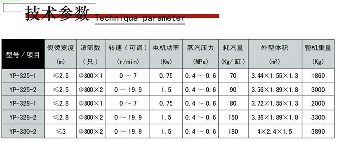 按所熨织物的宽度分为:1800型(1.8m)、2500型(2.5m)、2800型(2.8m)、3000型(3m)。